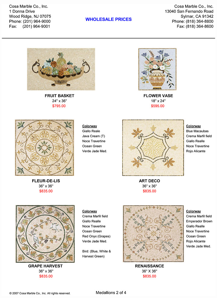 Price sheet design and photography for a stone and tile wholesaler.